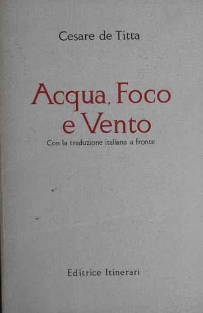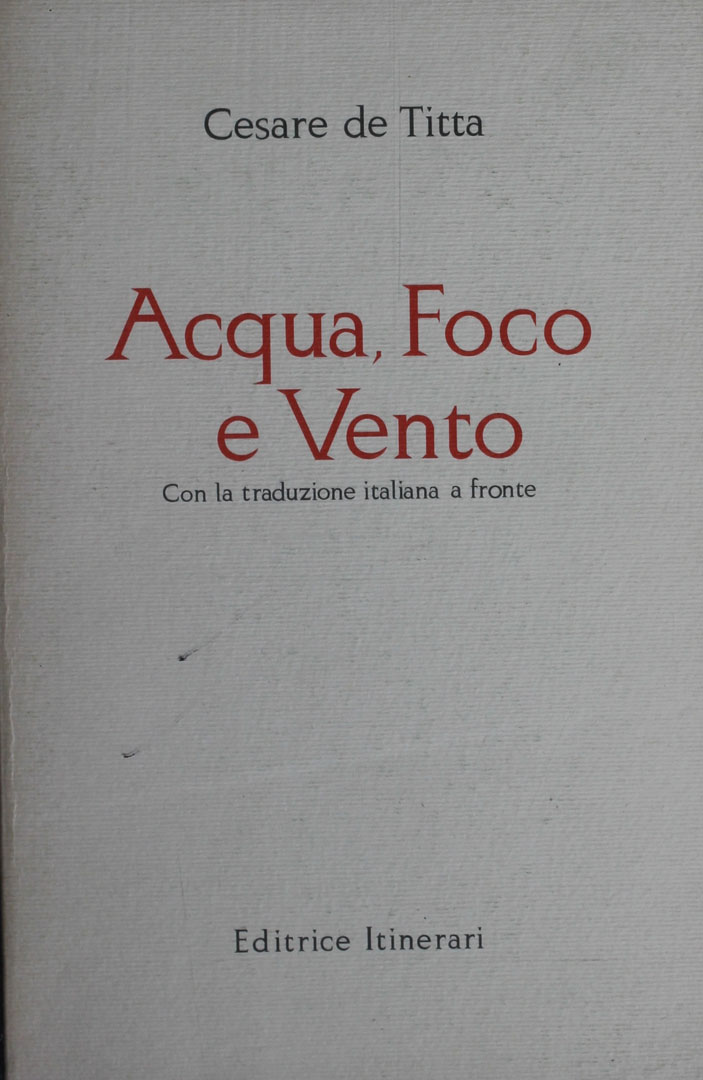 Il poema dialettale Acqua, Foco e Vento, pubblicato per la prima volta nel 1929 (Carabba, Lanciano), chiude la stagione dialettale e artistica di Cesare De Titta (Sant’Eusanio del Sangro, 1862-1933), uno dei più apprezzati poeti abruzzesi del primo Novecento.