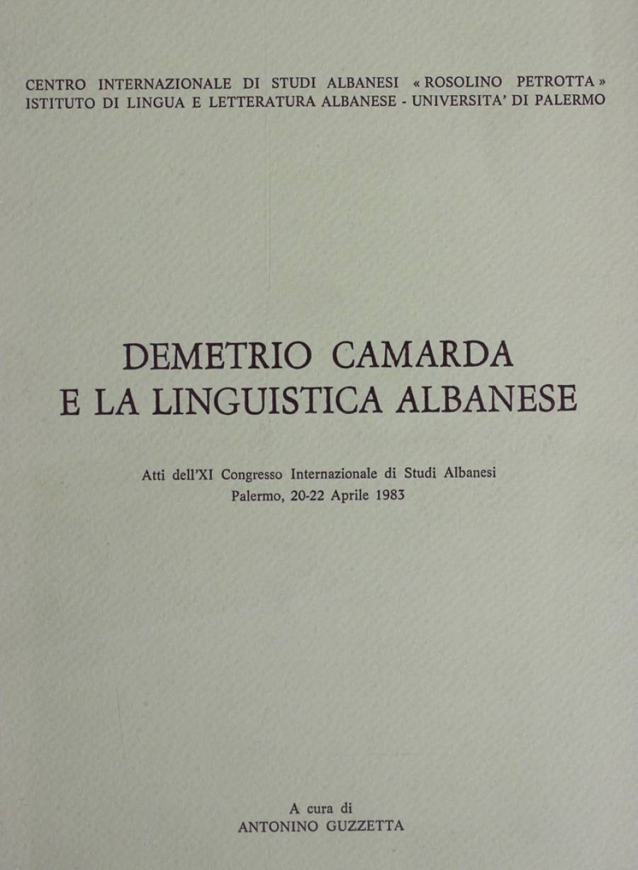 Il presente volume contiene gli Atti dell’XI Congresso Internazionale di Studi Albanesi tenutosi a Palermo il 20-22 aprile 1983 e intitolato a Demetrio Camarda (Piana degli Albanesi, 1821 – Livorno, 1882), glottologo di origine arbereshe riconosciuto come il più importante studioso di lingua albanese dell’Ottocento.