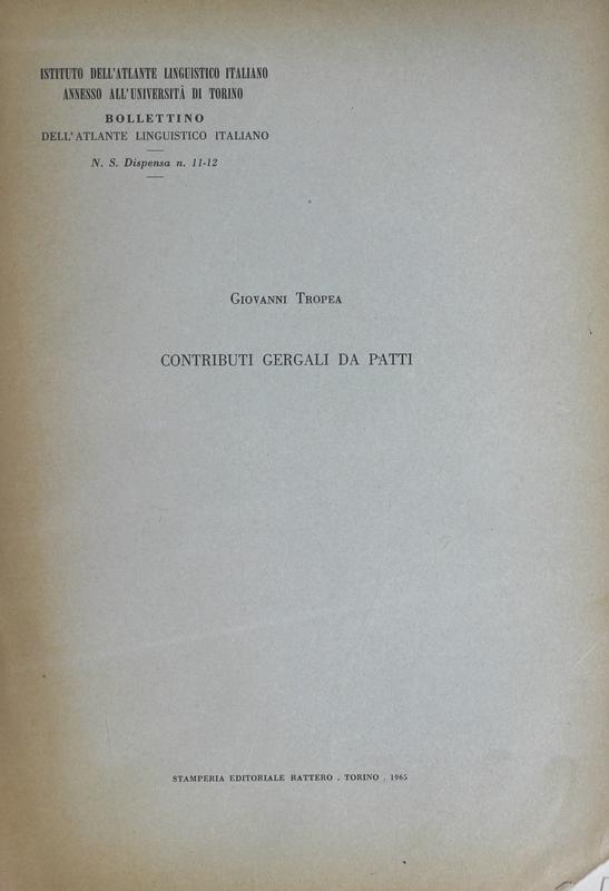 - Note: Estratto da "Bollettino dell'atlante linguistico italiano", n.s., n. 11-12.